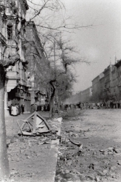 Roncsok az Üllői út 59-61. előtt, a Futó utcától a Páva utca torkolata felé nézve